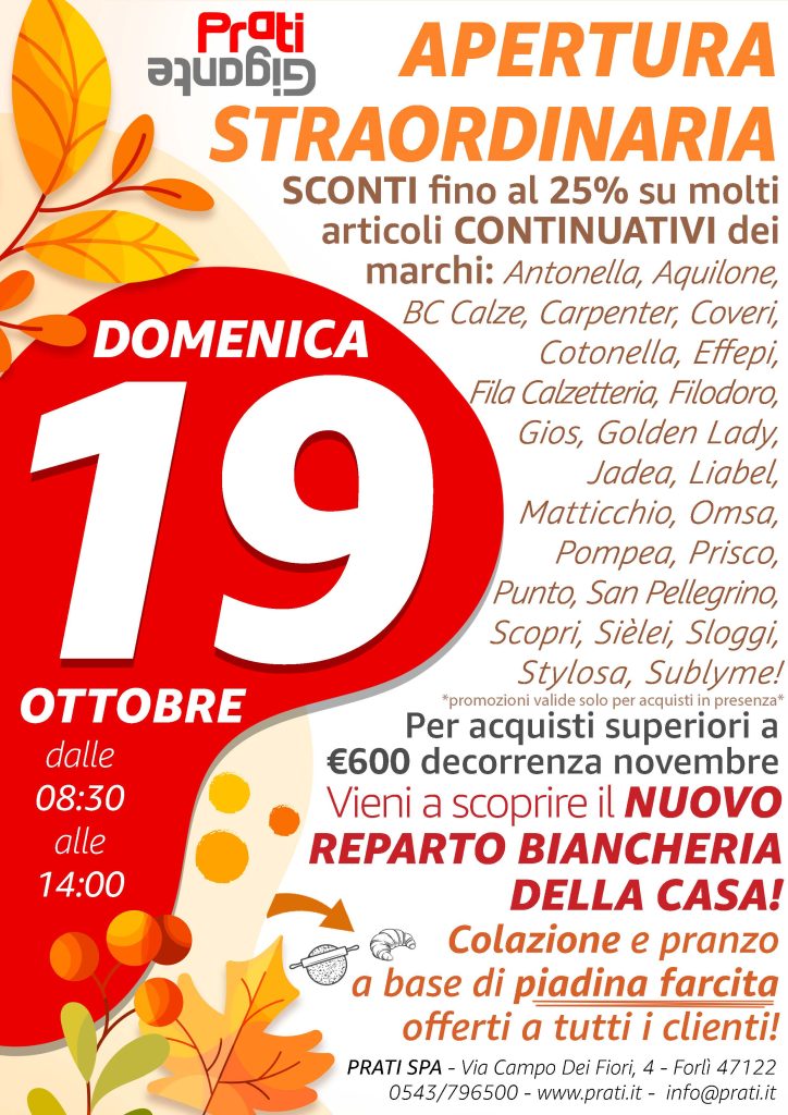 Domenica 19 OTTOBRE APERTURA STRAORDINARIA ✨✨✨ Vi aspettiamo dalle 8:30 alle 14:00 con sconti fino al 25% su articoli continuativi dei migliori marchi! 🥐🥪 Colazione e pranzo a base di piadina farcita offerta a tutti i clienti! 💥 Decorrenza novembre per acquisti superiori a 600€ 💥 📍 Vi aspettiamo nel magazzino di Forlì in via campo dei fiori 4! ° ° ° #Forlì #ingrosso #abbigliamento #intimo #Prati